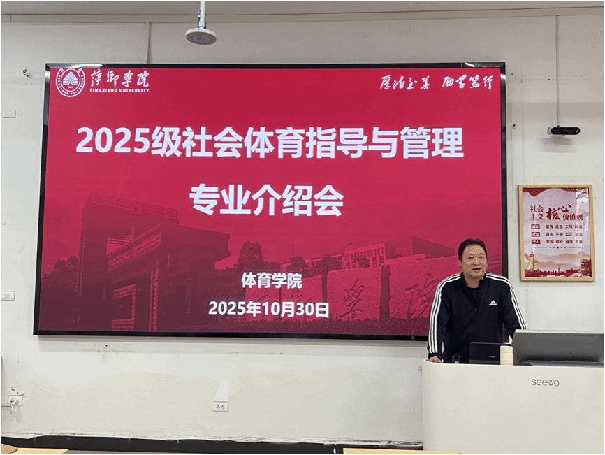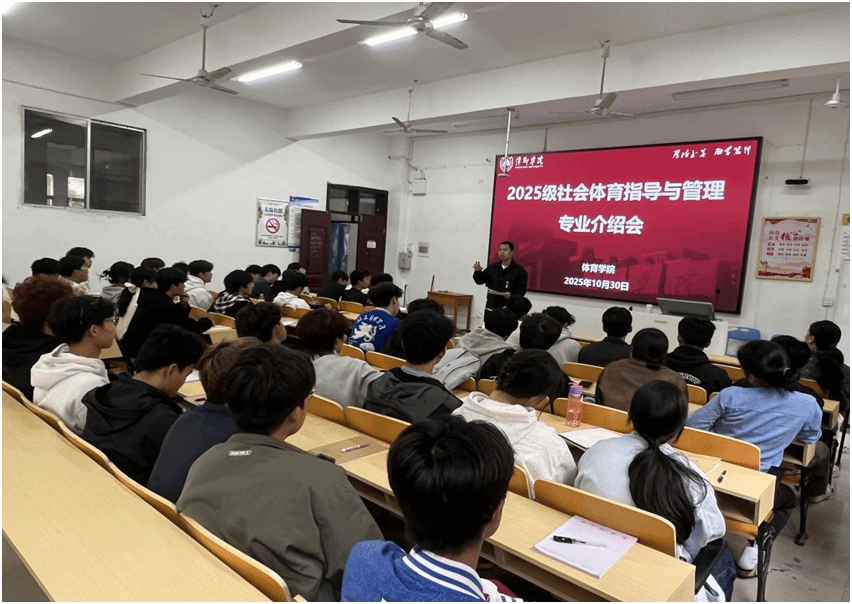 为帮助新生明晰专业方向,10月30日,体育学院于英华楼3112教室举办2025级社会体育指导与管理专业介绍会。院长陈岷、副院长彭苏建、教研科长刘兵及社体专业教研室杨细文出席,25级全体社会体育指导与管理专业新生参会。