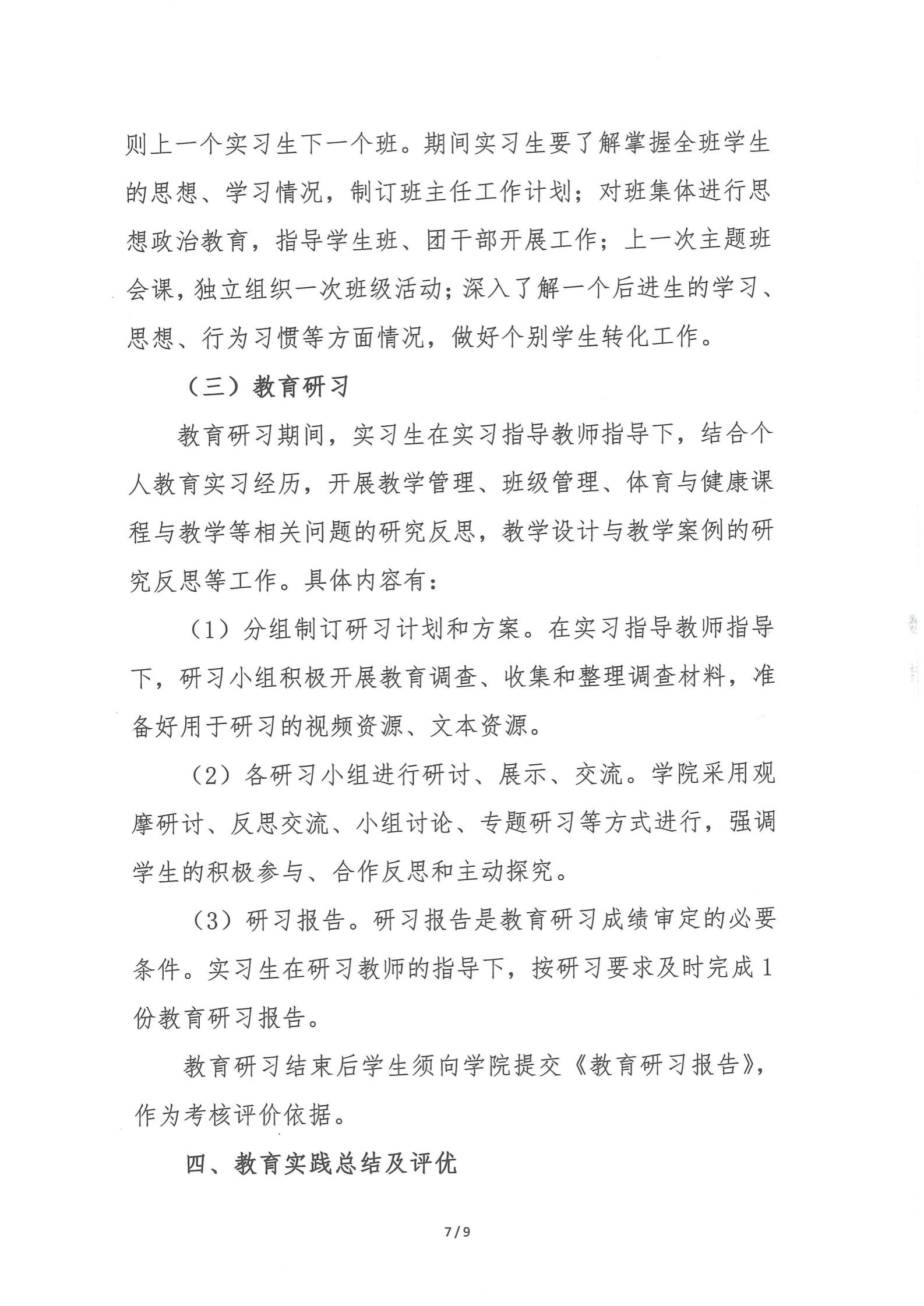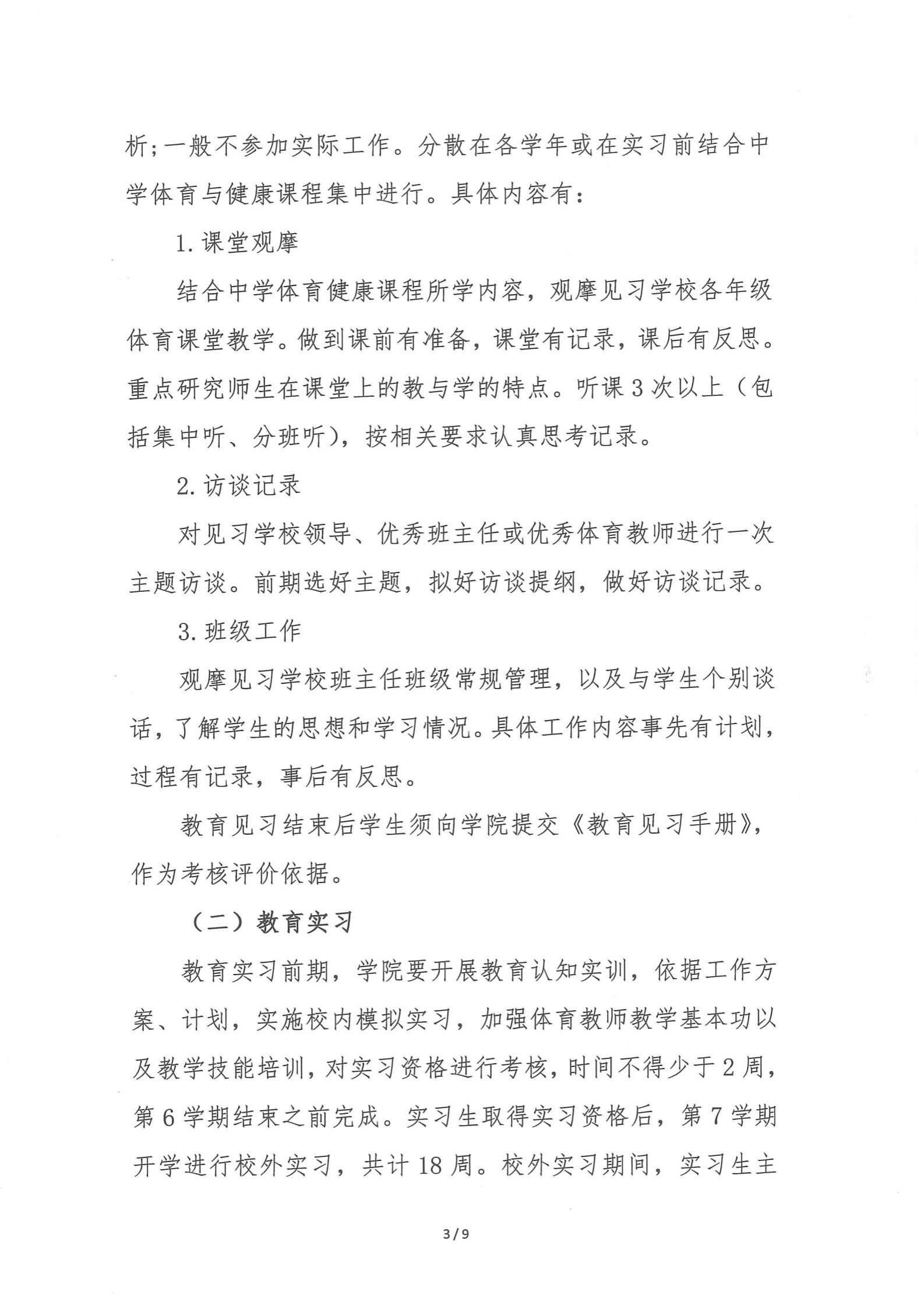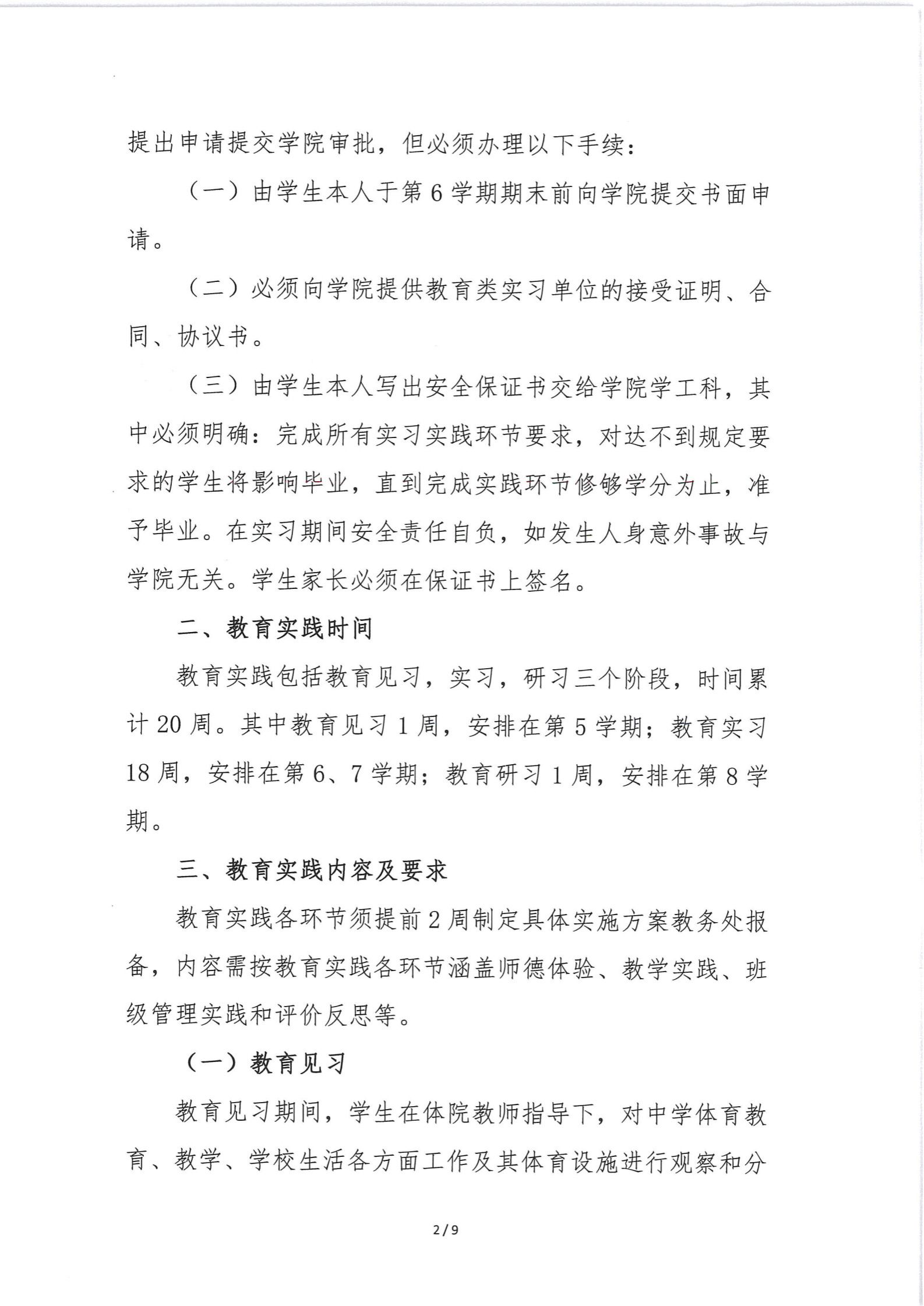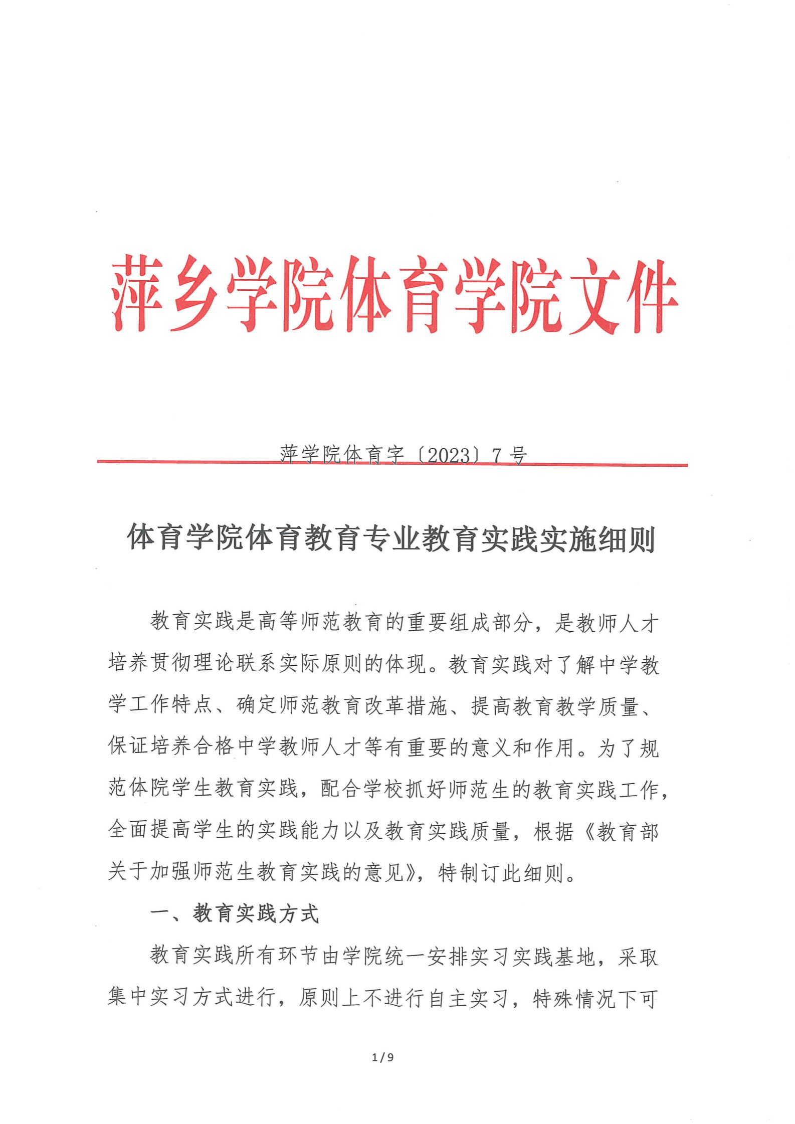 【教学管理】《体育学院体育教育专业教育实践实施细则》