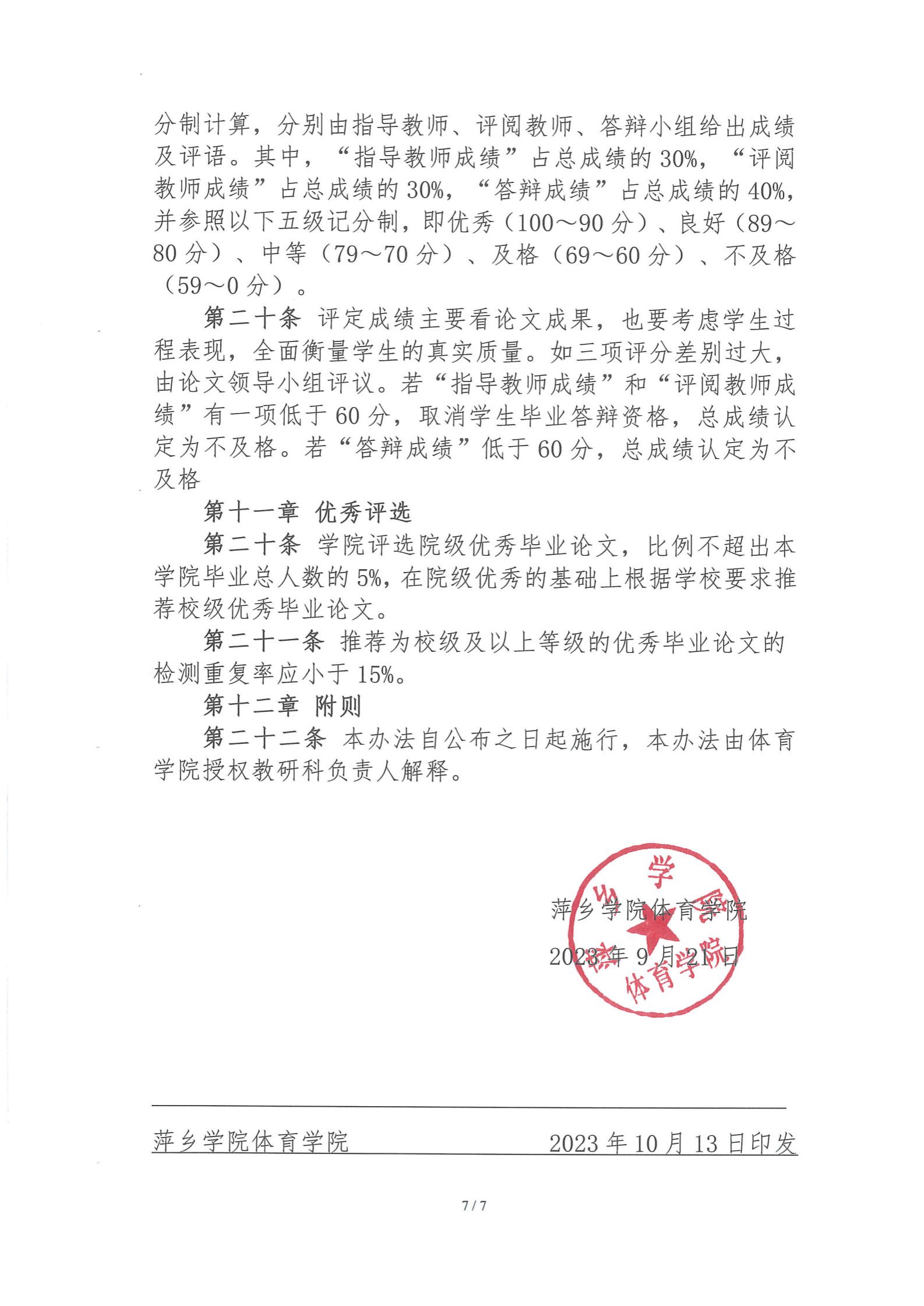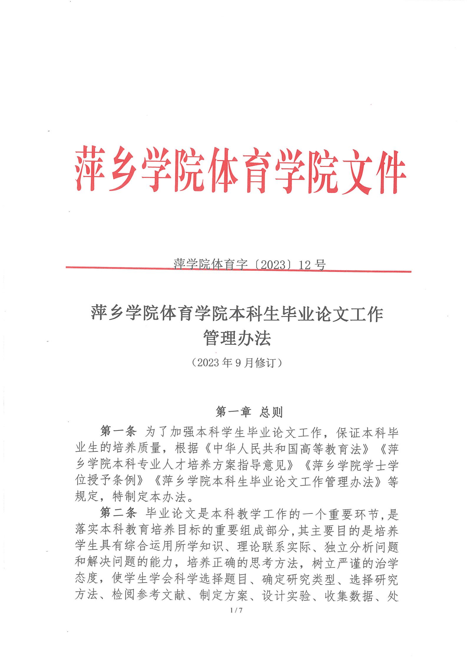 【教学管理】《萍乡学院体育学院本科生毕业论文工作管理办法》