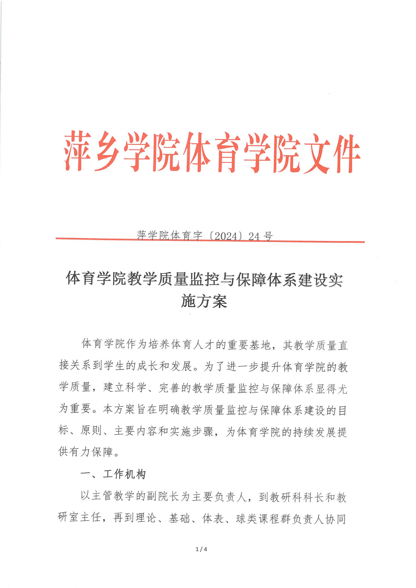 【教学管理】《体育学院教学质量监控与保障体系建设实施方案》