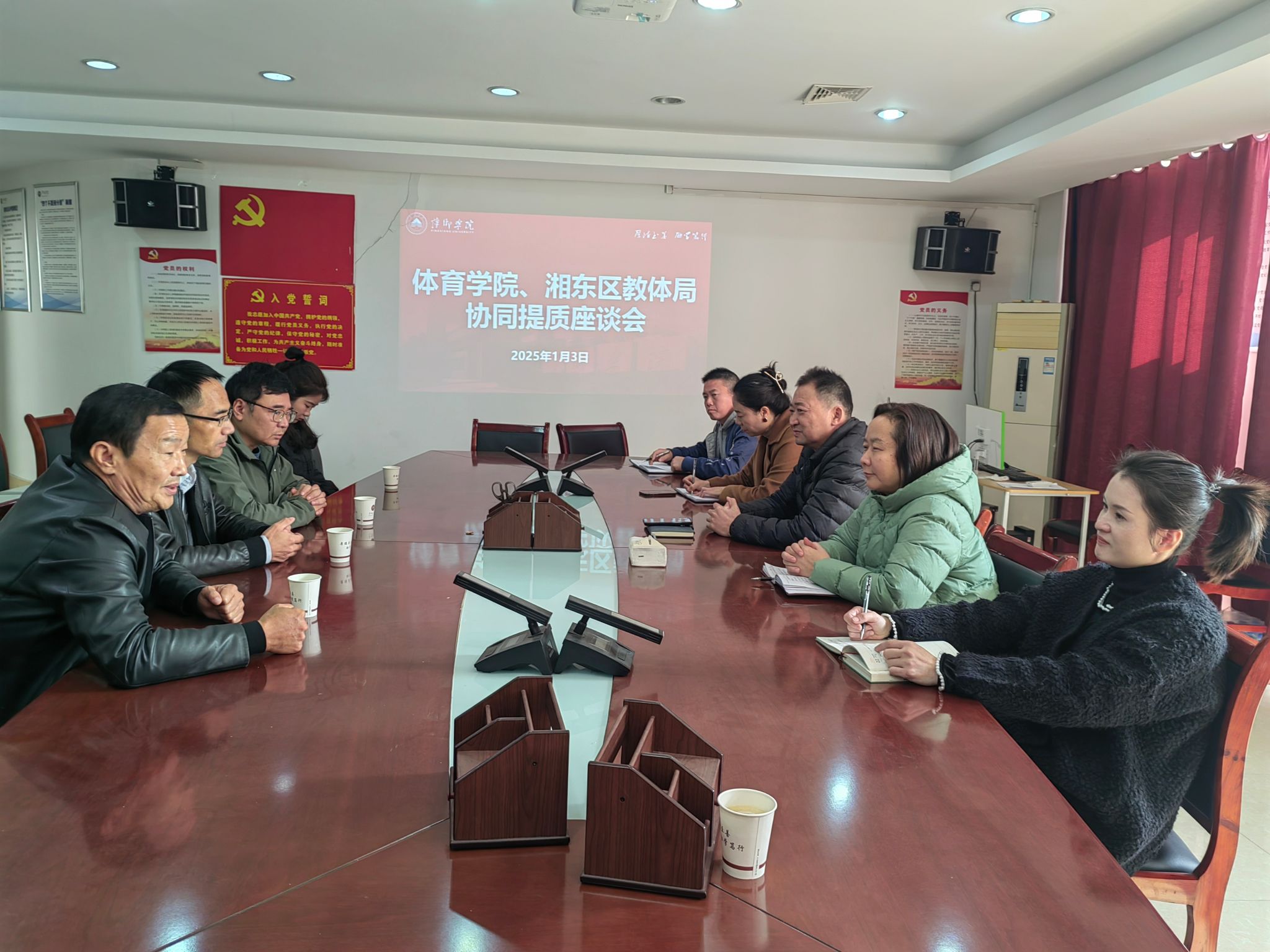 在“政府引领、协会支持、高校依托、多方共建”的指导思想下,1月3日体育学院与湘东区教体局、湘东区龙舟协会在体育学院联合召开了关于2026年江西省运动会萍乡市龙舟队发展的座谈会。三方围绕如何协同提质、共同推动龙舟队发展进行了深入交流,并就合作事宜达成了一致意见。