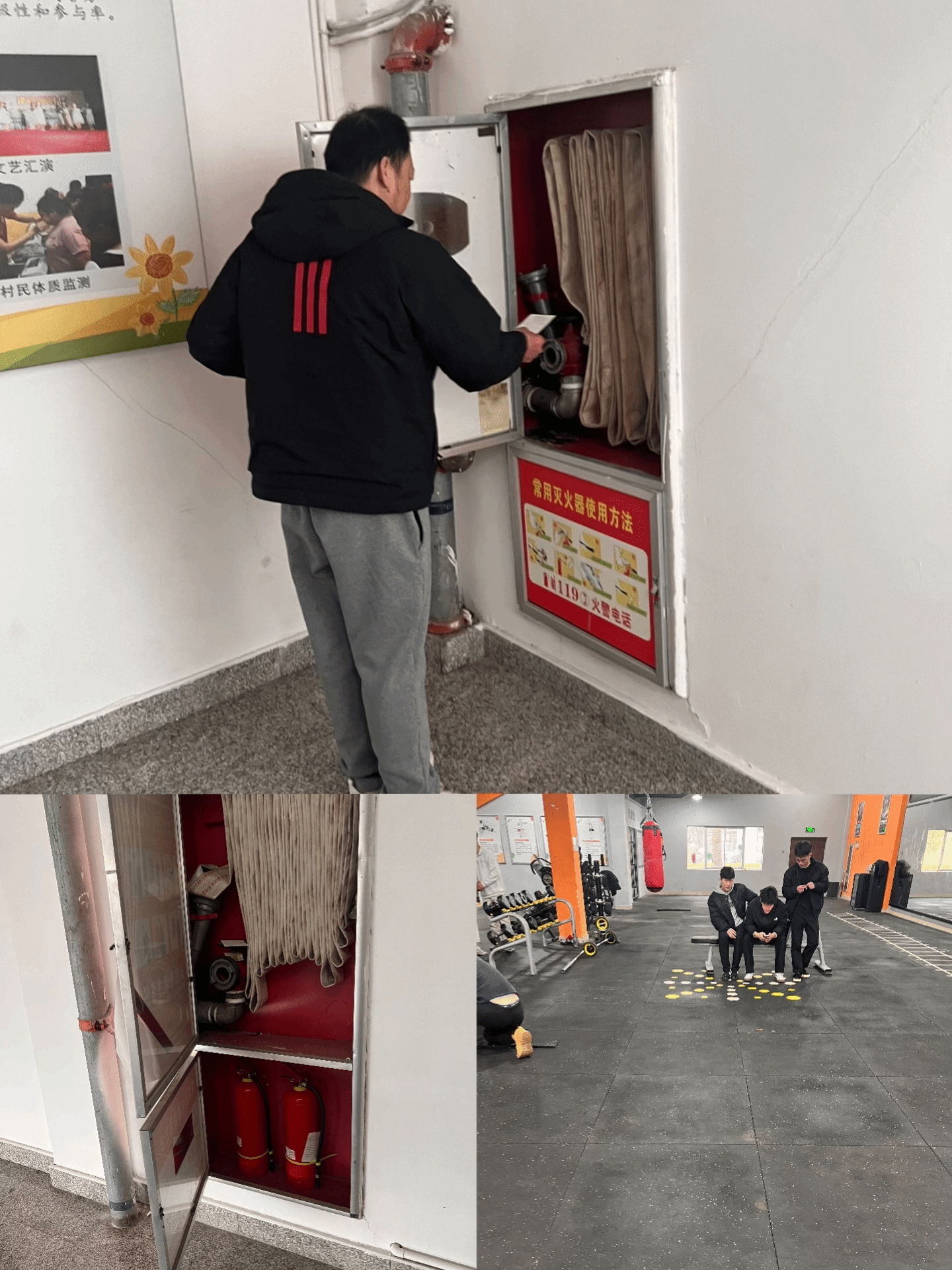 强调安全无小事,重点检查了场地围网、器材存放及应急措施。田径场排水沟畅通,篮球场围网稳固,健身房电源线路无裸露,场馆消防设备齐全,整体安全状况良好。