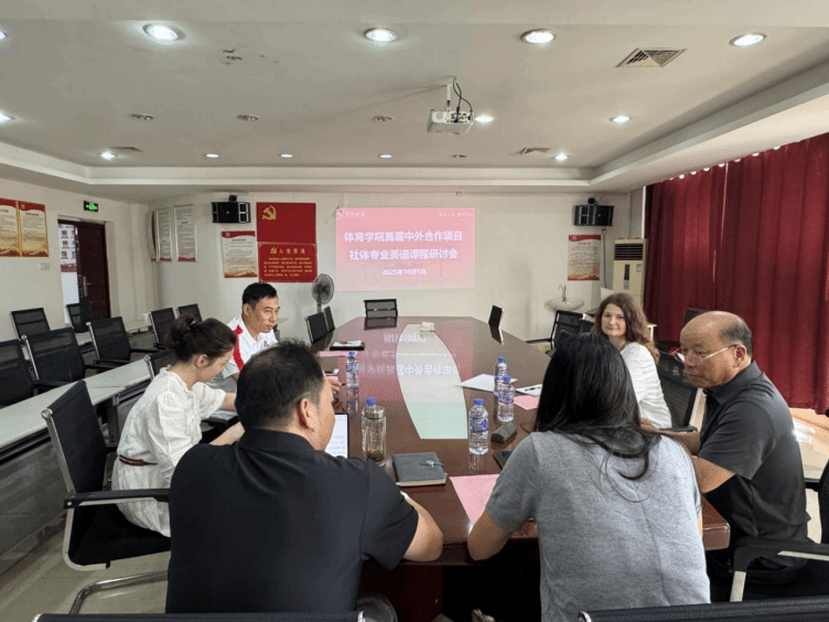 研讨会由体育学院副院长彭苏建主持。院长陈岷、党委副书记刘萍、教研科科长兼中外合作项目教研室主任刘兵,外国语学院黄柏萍教授,外聘俄罗斯籍英语教师Ilina Ksenia,以及中方英语助教蔡斯等共同参会。