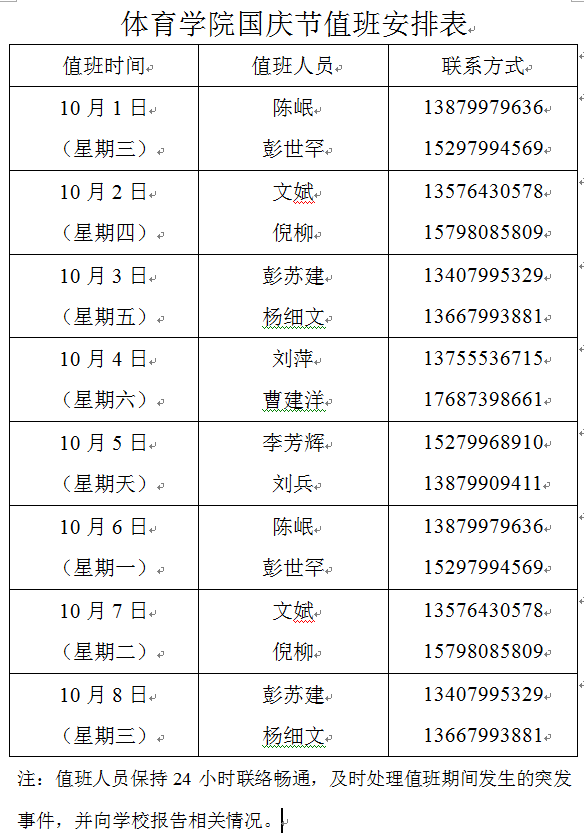 体育学院2025年秋季学期第六周工作安排(10.6—10.12)