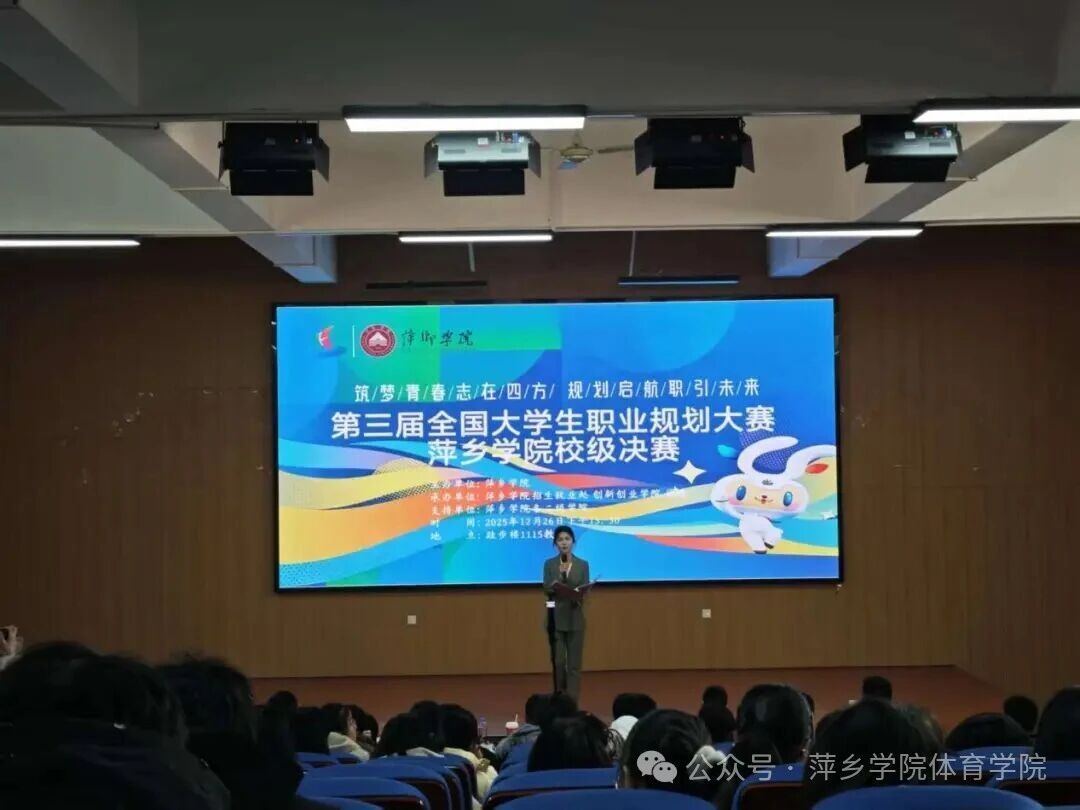 12 月 26 日,萍乡学院校级职业规划大赛决赛在跬步楼 1115 教室落下帷幕。体育学院学子张惠明、余欢凭借出色的规划方案与稳定的现场发挥,从众多参赛选手中脱颖而出,顺利晋级决赛并取得优异成绩。