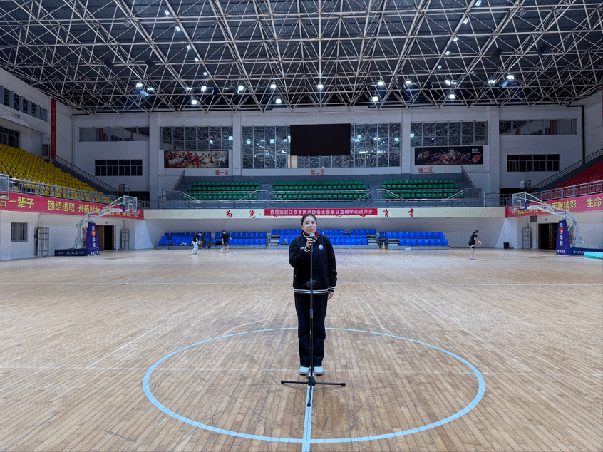 在激昂的国歌声落之后,彭苏建为本次比赛致辞。她指出太极扇是中华传统文化与体育精神的精妙结合,本次比赛不仅是同学们专业素养的实践展示,更是中外合作办学育人成果的生动体现。她勉励同学们要以赛促练、以赛促学,在传统文化浸润与专业训练中不断进步,希望大家能在中外交流的平台上,厚植文化自信,锤炼专业本领。