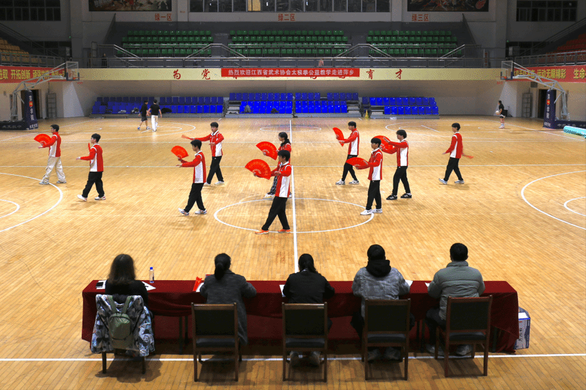 本次比赛以“扇舞太极 聚力班风 传承经典 逐梦青春”为主题,邀请了多位领导与评委莅临现场。萍乡学院体育学院副院长彭苏建,江西省太极拳教练员、裁判员荣莉,体育学院兼职辅导员,武术队教练员洪肇杰,专职辅导员谢钰文,以及中外合作办学班外籍教师Ksenia出席活动并担任评委。在全体师生的热烈掌声中,各位嘉宾依次就座,为这场兼具文化底蕴与专业精神的赛事拉开序幕。随后,全体起立奏唱国歌,为这场文化与体育的盛会拉开庄重序幕。